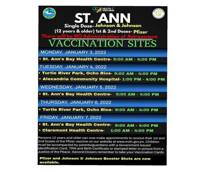 ST ANN VACCINATION SITES 1st & 2nd doses AstraZeneca and Single dose Johnson and Johnson First d [...]