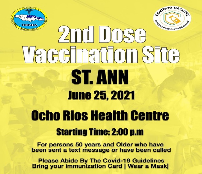 2nd dose vaccination blitz St. Ann June 25, 2021 Ocho Rios Health Centre Starting time 2:00 pm. Ple [...]